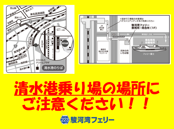 【重要】2025.4.18に移転した清水港乗り場の場所にご注意ください。